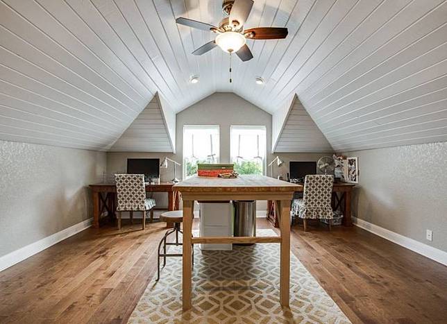 Kombinasi luas ruangan dan kayu besar ini akan membuat kamar tampak klasik dan elegan. Eksteriornya juga unik karena menyerupai desain rumah kayu tradisional dengan ruang terbuka dan teras yang seluruhnya terbuat dari kayu. Kongsinya kepada kami ruang loteng perlu mempunyai ketinggian sekurang-kurangnya 9 kaki untuk membolehkan ia diubah suai untuk kegunaan pemilik.